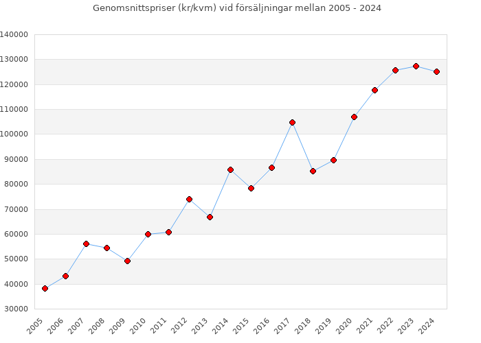 | Ytpriset är beräknat på samtliga överlåtelser under ett år, även sådana överlåtelser som inte är gjorda till ett marknadsmässigt pris (t ex överlåtelser mellan makar). Priset reflekterar därför inte alltid korrekt marknadsvärde. |